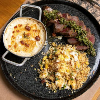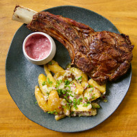 Corte nobre da costela finalizado na chama aberta, acompanhado de batata rústica frita temperada com verdurinhas picadas, parmesão e azeite trufado.