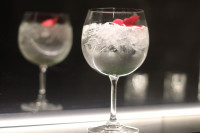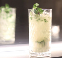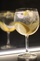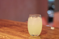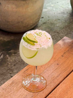 Gin, xarope de gengibre, limão, água tônica, finalizado com espuma de gengibre.