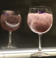 Gin, morango, xarope de morango, sumo de limão siciliano, água com gás e espuma de gengibre.