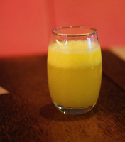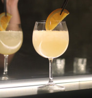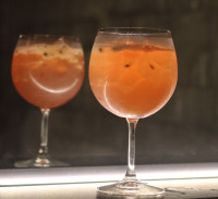 Vodka, polpa de maracujá, mel de laranja, sumo de limão siciliano e espuma de gengibre.