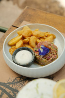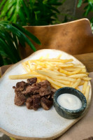 Filé mignon picado na ponta da faca, temperado com cebola, pimenta de cheiro, cebolinha e mostarda trufada. Acompanhado de batata rústica frita.