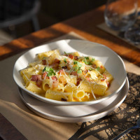 Clássico italiano, rigatoni grano duro com creme a base de gemas de ovo caipira, bacon e parmesão, finalizado com mais parmesão e pimenta preta moída na hora.