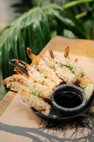 10 unidades de camarão empanados na farinha de tapioca crocante, acompanhado de tare de pimenta de cheiro.