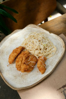 Típico sanduíche japonês e lombo suíno empanado, finalizado com repolho cortado finamente, molho katsu de goiabada, aioli de alho, pimenta sriracha e picles de pepino.