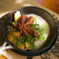 Polvo perfeitamente cozido finalizado no molho ponzu com pimenta de cheiro e coentro, batata doce frita (roxa ou salmão), aioli de alho, gergelim e quinoa crocante.